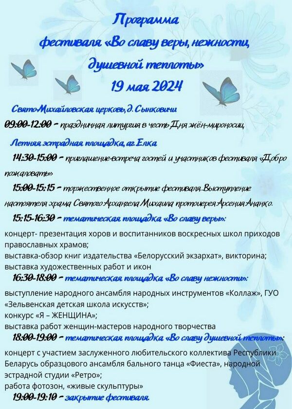 Приглашаем на фестиваль «Во славу веры, нежности, душевной теплоты»! Опубликовано: 15 мая, 2024 г. 84 Служба информации газеты «Праца» Интересные и актуальные новости Зельвенского района в нашем Telegram-канале. Подписывайтесь по ссылке! 84 Поделиться